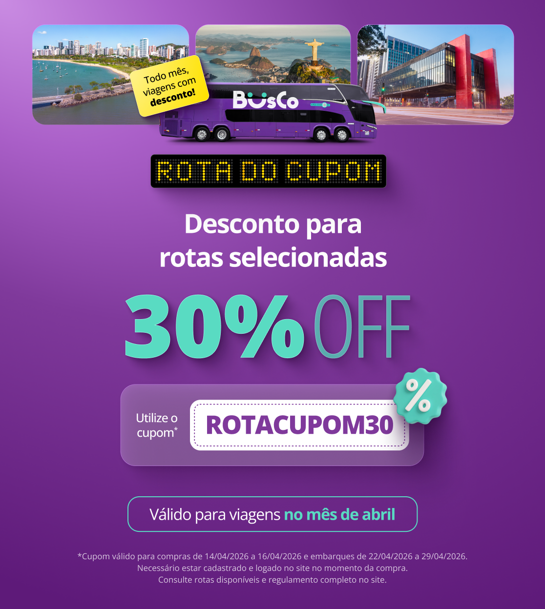 Aproveite e use o cupom VAIDEBUSCO15 nas compras de Ida e Volta!