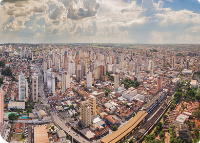 Vista aérea de São José do Rio Preto mostrando uma grande área urbana com muitos prédios e avenidas.