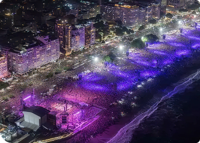 O início está previsto para 21h45, mas a movimentação em Copacabana começa bem antes. Quem pretende ficar mais próximo do palco costuma chegar com antecedência, já que a praia enche ao longo do dia. Também é comum haver programação antes do show principal.